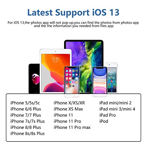 - ?【Formatos de foto y video】:Compatible con formato de foto JPEG y RAW y formato de video H.264 y MPEG-4 de cámara digital para usuarios. Puede compartir sus fotos, videos de su cámara a su red social libremente. Para los usuarios actualizados de i,0S 13, también se pueden transferir archivos EXCEL, WORD, PDF desde la tarjeta tf / Micro sd al i-phone/i-pad y desde el phone/pad a la tarjeta tf / Micro sd.