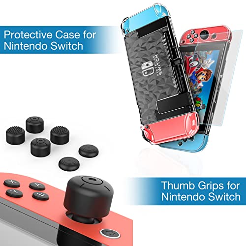 HEYSTOP Funda Compatible con Nintendo Switch, 16 in 1 Accesorios Switch con Carcasa de TPU+Grip Mandos+Protector de Pantalla+Soporte Regulable+Cable USB+Auriculares+Funda Comfort Grip+6 Pulgar Grips
