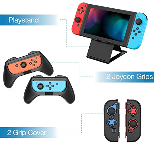 HEYSTOP Accesorios para Nintendo Switch, Funda para Nintendo Switch, Carcasa Switch, Protector Pantalla, Agarre et Volante para J-Con, Soporte Juegos, Base Carga, Estuche J-Con, Thumb Grips etc, Negro