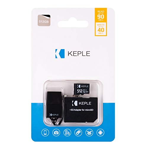 - EXPANDIR ALMACENAMIENTO MÓVIL: la tarjeta de memoria microSD de Keple (512 GB) añade espacio de almacenamiento instantáneamente a cualquier dispositivo con una ranura para tarjetas microSDHC. La ampliación de la memoria de su teléfono inteligente androide / Windows, cámara de acción, drone o tablet PC significa que puede capturar más fotos y vídeos, llevar más archivos y disfrutar de su música favorita dondequiera que vaya.