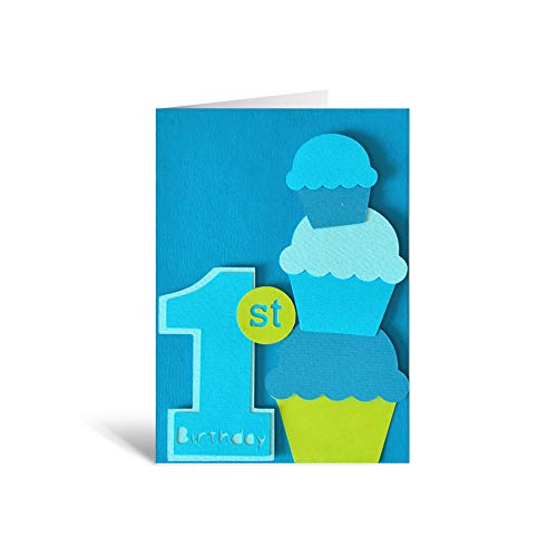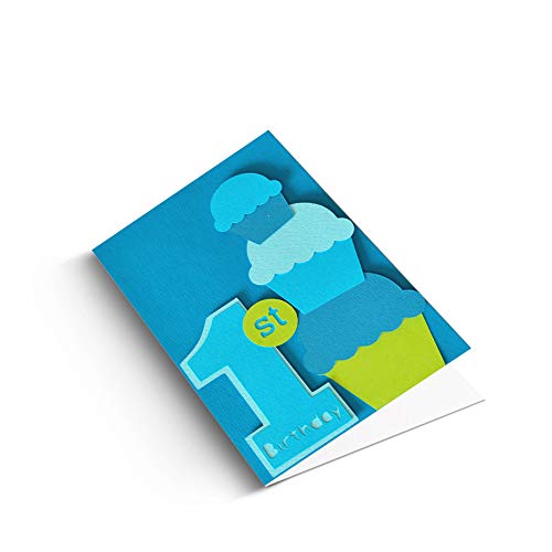 Mi primer cumpleaños - niño - tarjeta de felicitación y sobres (formato 15 x 10,5 cm) - vacío por dentro, ideal para su mensaje personal - totalmente artesanal.