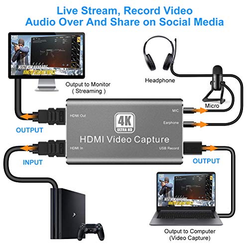 - ?[Compatible con múltiples sistemas] La tarjeta de captura de video es compatible con Windows 7, 8, 10, Mac OS X 10 y Linux; Puerto de transmisión USB 3.0 de alta velocidad para una transmisión en tiempo real más fácil a Twitch, Youtube, Facebook, Twitter y PS4, Xbox One, Xbox 360, Wili U Wii, Nintendo Switch, DSLR, Webcam y otros equipos de puerto HDMI Tarjeta de captura HDMI compatible .