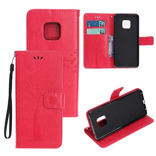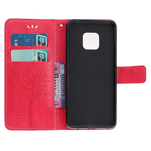 JOMA-E Shop Funda para Huawei Mate20 Pro [con protector de pantalla gratis], diseño de búhos en relieve, piel sintética, tipo cartera, con función atril, para Huawei Mate 20 Pro 2018 (rojo rosa)