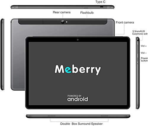 - 【Cámara Doble y Fácil de Usar】 Tableta MEBERRY Android 9.0 Con cámaras duales delanteras de 5.0 MP y traseras de 8.0 MP son convenientes para fotos y video chat. Diseñado con un cuerpo delgado y liviano y una pantalla IPS G + P de 10 pulgadas, control táctil inductivo de 10 puntos. Admite controles parentales, conmutador multiusuario, protección de privacidad, GPS, Bluetooth, FM, etc