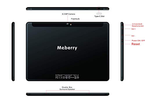 - 【Garantía y Embalaje】 MEBERRY siempre tiene al cliente como prioridad. Después de comprar nuestra tableta, viene con servicio al cliente 24x7 y servicio de reemplazo por 36 meses. La lista de empaque: tableta de 10 pulgadas | Funda protectora para Tablet PC | Teclado Bluetooth | Ratón inalámbrico 2.4G | Adaptador tipo C a USB | Lápiz capacitivo | Película protectora | Manual del usuario | Paño sin polvo | Cargador estándar europeo | Cable de datos tipo C | ranura para tarjeta.