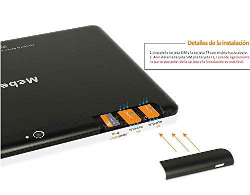 Tablet 10 Pulgadas WiFi+Cellular 4GB RAM+64GB ROM Android Pie MEBERRY Tablets, Google GMS | Dual SIM & Dual Cámara(5MP+8MP) | HD IPS | 8000mAh | Bluetooth | GPS, Teclado & Ratón, Negro