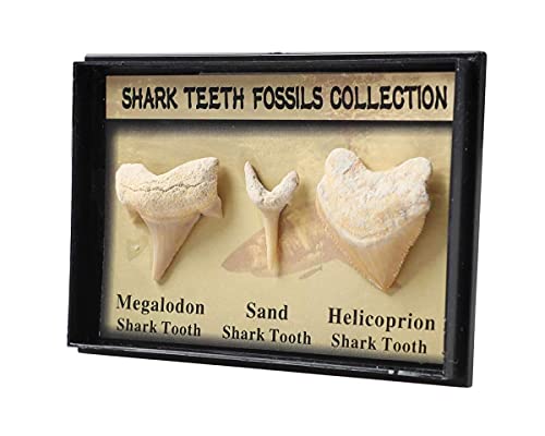 - Tamaño: fósil de dientes de tiburón Megalodon de aproximadamente 1 pulgada, fósil de dientes de tiburón de arena de aproximadamente 1/2 pulgada, fósil de dientes de tiburón de helicoprión de aproximadamente 1 pulgada. Estos fósiles son seleccionados a mano, por favor permite pequeñas variaciones en tamaño y color.