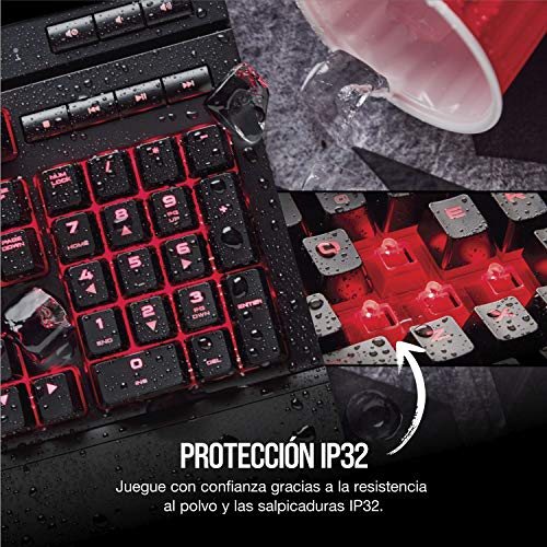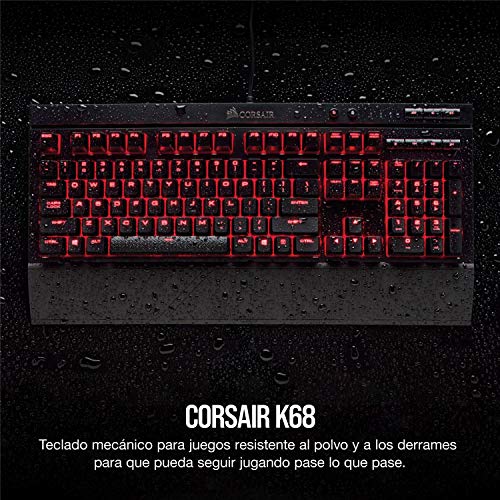 Corsair K68 Teclado mecánico Gaming retroiluminación LED rojo, resistente al polvo y a las salpicaduras,QWERTY español, Cherry MX Red (Suave y rápido)