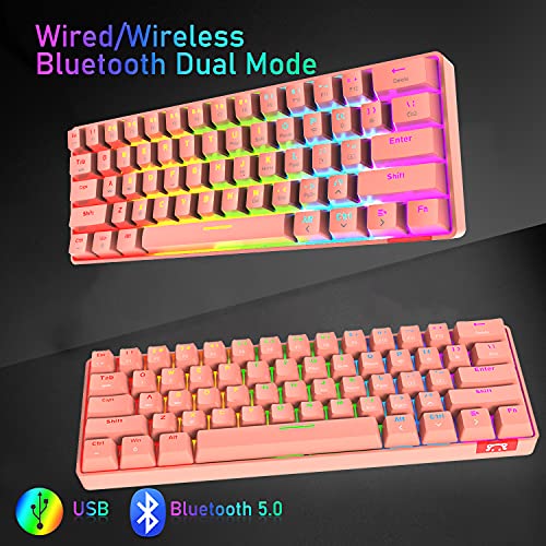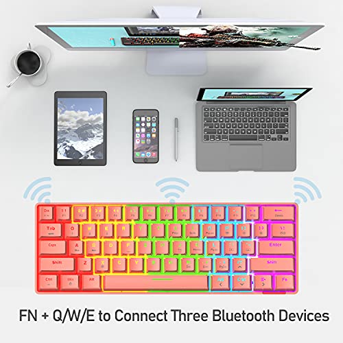 60% Teclado mecánico Cableado/Inalámbrico Teclado Bluetooth 5.0 61 teclas RGB Rainbow LED Retroiluminado USB Tipo-C Teclado para juegos a prueba de agua Teclas anti-fantasma (Interruptor rojo/rojo)