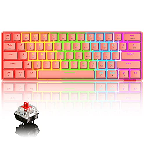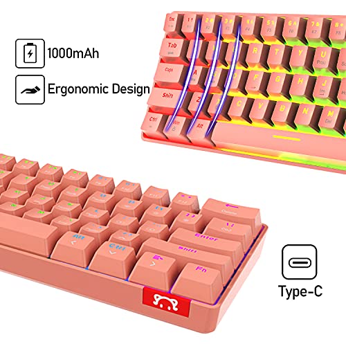 - 【Teclado mecánico portátil】 Teclas mecánicas profesionales, teclado compacto para juegos de 61 teclas, que le brinda más espacio en su escritorio para mover el mouse o colocar otros dispositivos. Con un diseño ergonómico, el teclado es muy cómodo de usar durante largas sesiones de mecanografía y juegos.