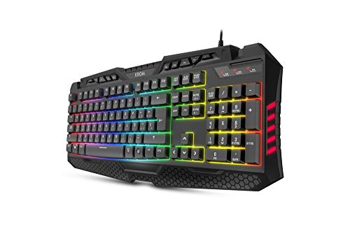 Krom KYRA - NXKROMKYRA - Teclado Gaming membrana, ES layout, anti-ghosting N-19, función WASD, RGB Rainbow con 9 efectos, USB, color negro