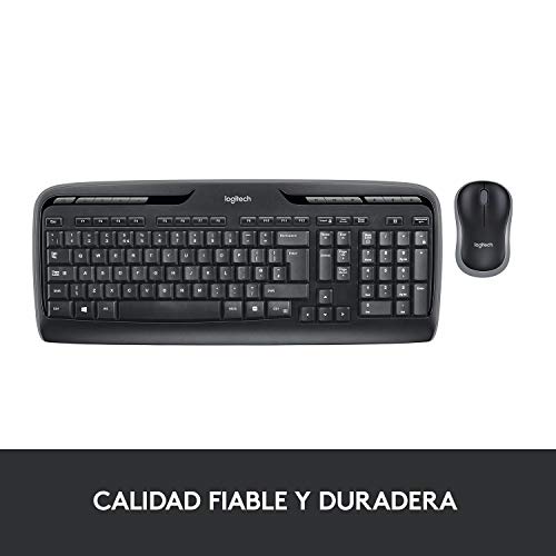 Logitech MK330 Combo Teclado y Ratón Inalámbrico para Windows, 2.4 GHz con Receptor USB Unifying, Ratón Inalámbrico Portátil, Teclas Multimedia, PC/Portátil, Disposición QWERTY Español, Negro