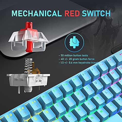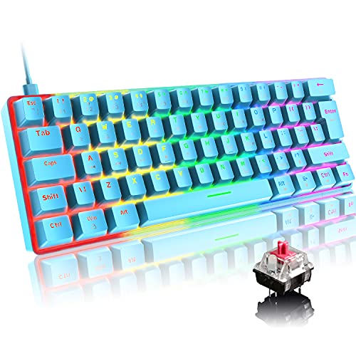 Mini 60% Teclado Mecánico para Juegos,Compacto 62 Teclas,Cable USB-C Desmontable,18 Chroma Retroiluminación RGB,QWERTY Layout,Interruptor Rojo, Anti-Fantasma para Computadora/PC/Laptop/Mac-Azul