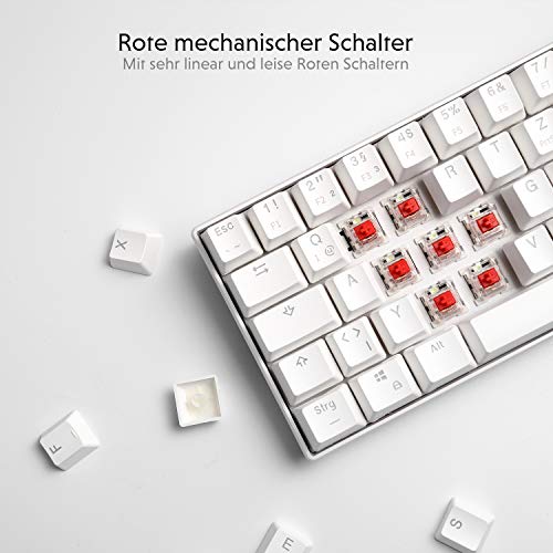 RK Royal KLUDGE RK61-DE QWERTZ - Teclado mecánico inalámbrico con Bluetooth y tapas para teclas blanco Blanco, interruptor rojo.