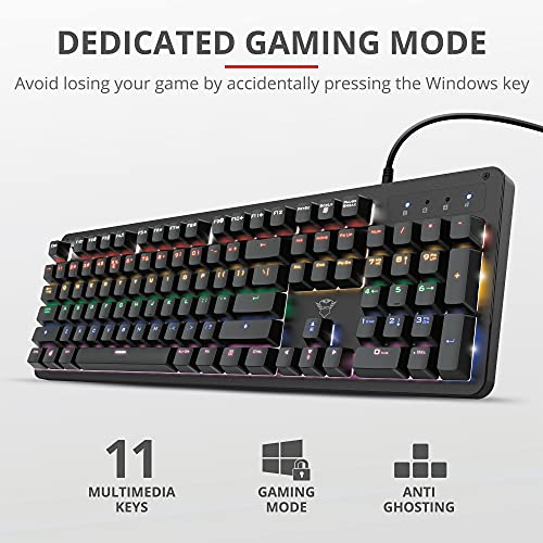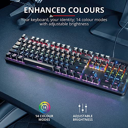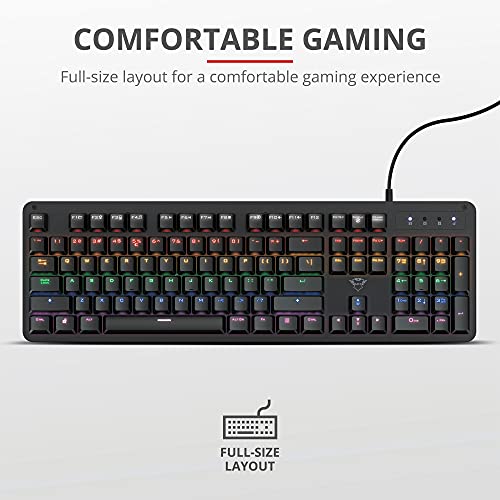 Trust Gaming Teclado Mecánico GXT 1863 Thaz - Disposición QWERTY Español, Conmutadores Mecánicos Red Outemu, 14 Modos de Color, USB Plug & Play, con Cable, PC/Ordenador