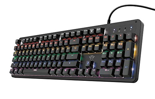 - ACCIÓN DE TAMAÑO COMPLETO – El Trust GXT 1863 Thaz es un teclado mecánico gaming de tamaño completo con un diseño QWERTY y teclado numérico.