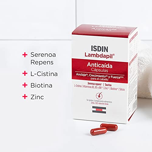 ISDIN Lambdapil Cápsulas Anticaída del Cabello, 180 Cápsulas, 20% Gratis, Aporta ingredientes para mantener un cabello saludable, 3 Meses Tratamiento