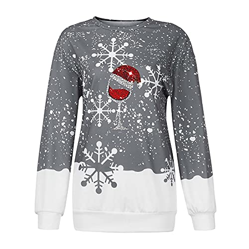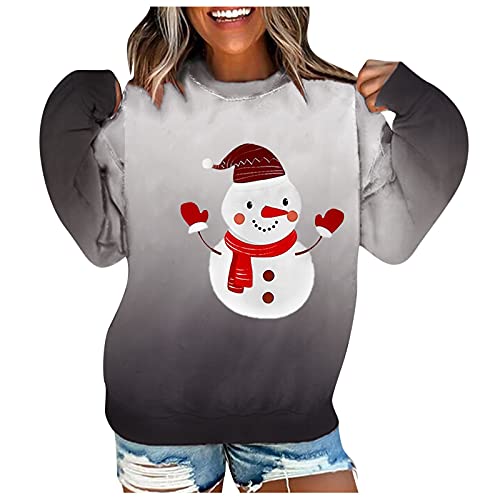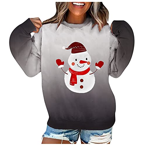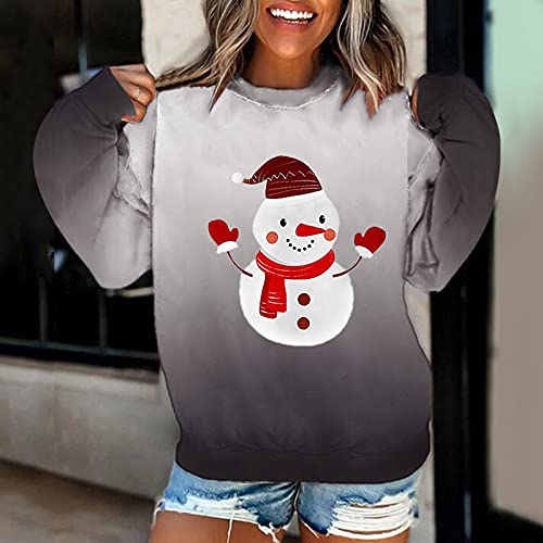 ZDYZDQ Mujeres Navidad Sudadera Sudadera Cuello Personal Tops Suites, Mujeres Fashion Crew Cuello Gradiente Gradiente Impresión de Navidad de Manga Larga Blusa Pullover Sudadera Tops