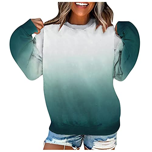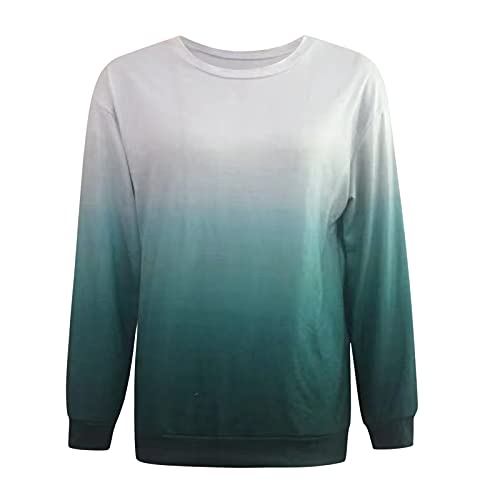 ZDYZDQ Sudaderas para Mujeres de Manga Larga Cuello con Cuello Redondo Tunic Tops para Leggings, Mujeres Fashion Crew Cuello Gradiente Impresión de Manga Larga Blusa Sudadera Sudadera Top