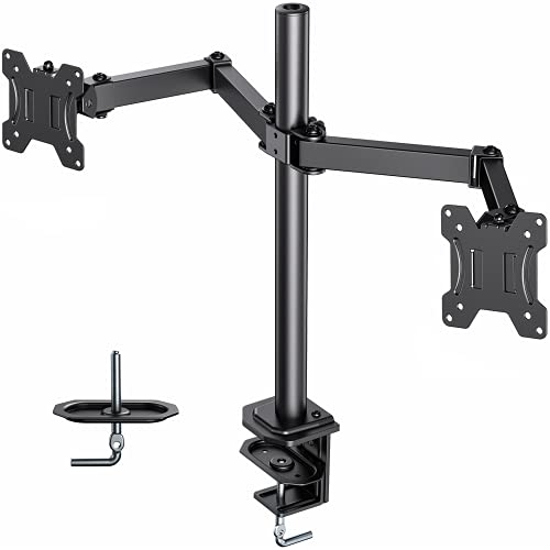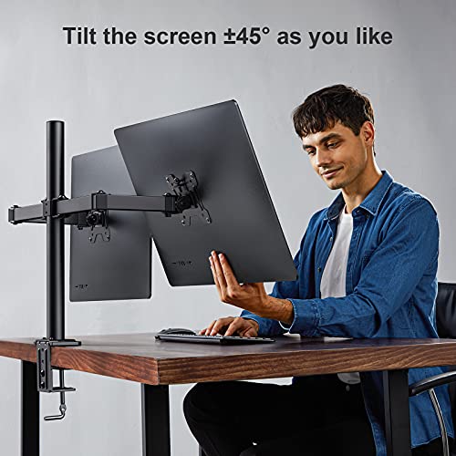 HUANUO Soporte 2 Monitores, Totalmente Ajustable para Dos Pantallas LCD LED de Tamaño Desde 13 a 27 Pulgadas, 2 Opciones de Montaje, VESA 75/100