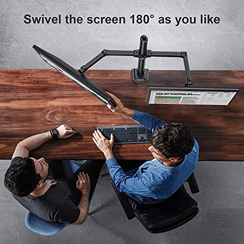 - Ahorrar Eapacio y Ergonomía - Sostiene 2 monitores del escritorio con una varilla resistente en lugar de 2 pies de monitor. Esto le ahorrará más espacio en el escritorio y hará que su lugar de trabajo sea más espacioso y sin problemas. Los monitores se pueden colocar en vertical u horizontal, para que pueda trabajar desde diferentes ángulos, reduciendo efectivamente la tensión en el cuello y la espalda