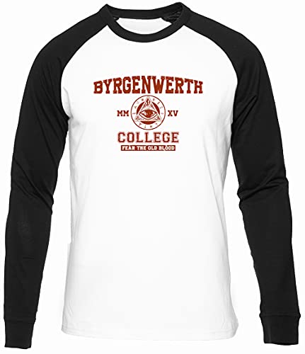 Byrgenwerth College Fear The Old Blood Hombres Mujeres Unisexo Béisbol Camiseta Blanco Negro Mangas Largas Men Women Unisex Baseball T-Shirt White XL