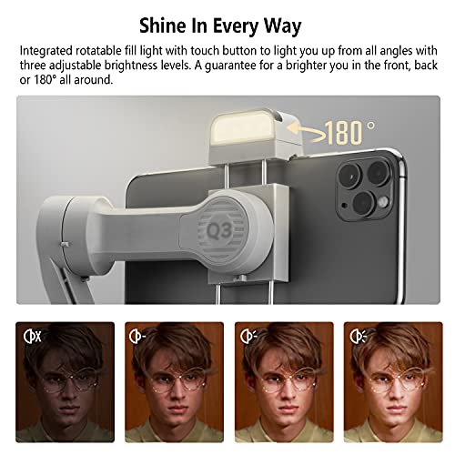 Zhiyun Smooth Q3 Combo, estabilizador de cardán de 3 ejes para smartphone con trípode de agarre con luz de relleno LED, compatible con iPhone y Android
