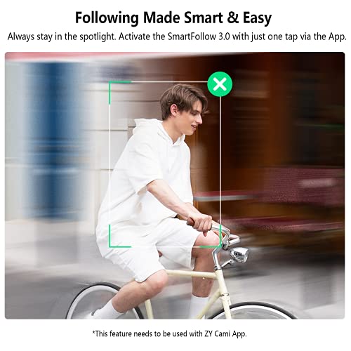 - SmartFollow 3.0 y control de gestos: siempre permanece en el foco. Activa el SmartFollow 3.0 con un solo toque a través de la aplicación ZY Cami. ¿Demasiado para manejar tus manos? Di sí al control de gestos. Utiliza solo un solo gesto para controlar el disparo mientras puedes ser tú mismo en cualquier lugar en cualquier momento. Disponible en varios modos panorámicos.