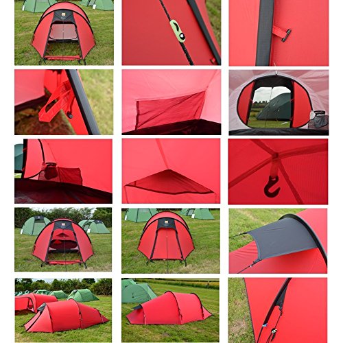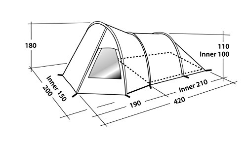 - El diseño de túnel proporciona un buen equilibrio entre peso y espacio y cuando se combina con la tela de nailon Stormtex N4000Si resulta en una gran tienda de campaña ligera con mucho espacio