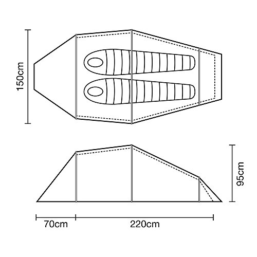 - Ligero y de bajo volumen hace de esta una tienda de campaña ideal para todo el año. Peso mínimo: 2. 03 kg. Tamaño del paquete: 42 x 15 cm