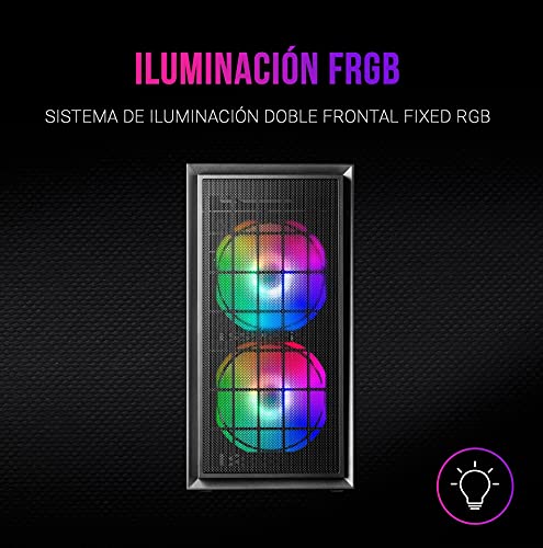 - ILUMINACIÓN FRGB GAMING: La ventilación doble frontal de la MCDUO cuenta con un sistema de iluminación fixed RGB que proporciona a tu setup un flujo constante de color, el frontal de diseño Mesh optimiza su aspecto, combinando refrigeración e iluminación