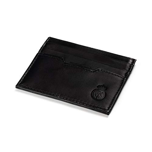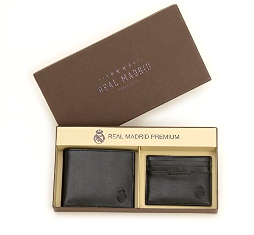 Real Madrid - Cartera Tarjetero Hecho a Mano con Piel. Juego de 2 Piezas. Color Negro RMJ-80011