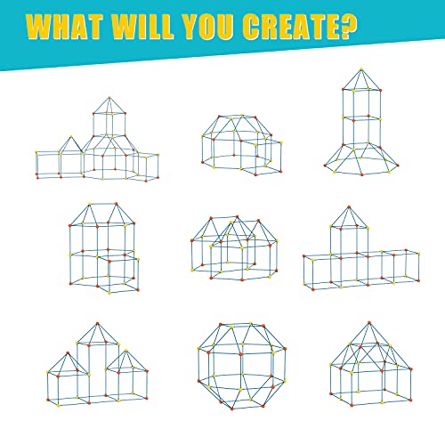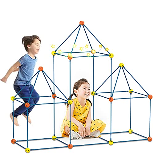 - [Juguetes creativos para niños y niñas]: el kit de construcción de fortalezas definitivo de nuestro niño está diseñado para niños de 3 años en adelante. Pueden construir una cueva, jugar con carpas, cohetes, casas, iglús, castillos de princesas, túneles, tipis, carpas de juguete, barcos piratas, solo agregue sábanas para crear un escondite.