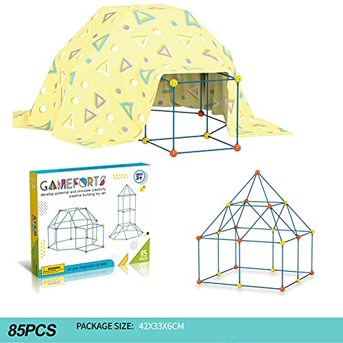 - [Juguete de la fortaleza]: Incluye 54 palos, 16 bolas amarillas y 15 bolas naranjas. ¡Nuestros 85 juegos mágicos permiten a sus hijos construir fuertes de todas las formas y tamaños! (No incluye mantas).