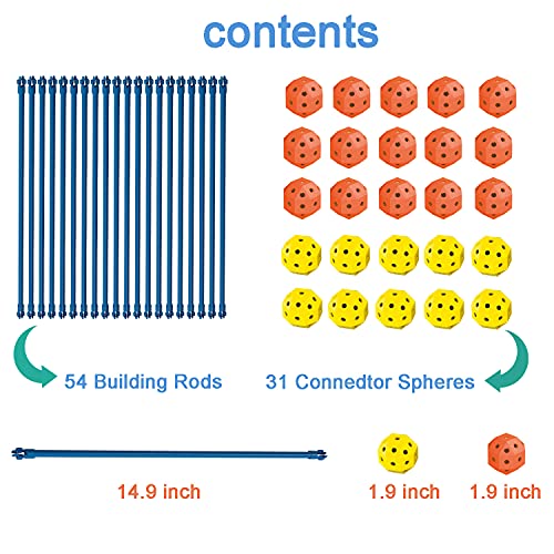 - [Fácil de montar y duradero]: hecho de plástico ABS resistente y de alta calidad, simplemente inserte y gire la varilla en la bola, el constructor puede conectar y desmontar fácilmente en unos segundos sin colapso estructural. Se pueden utilizar para actividades en interiores y exteriores.