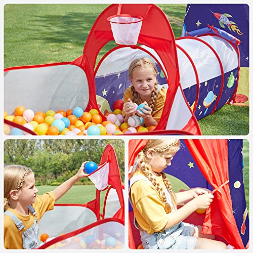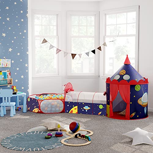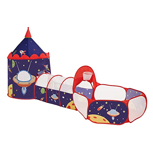 SONGMICS Tienda de Niños Pop-up 3 en 1, Carpa de Niños, Tienda de Infantil con Ventana de Malla y Cesta, Tema Aeroespacial, Uso interior o exterior, Idea de Regalo, y Cumpleaños, Azul y Rojo LPT703Q01