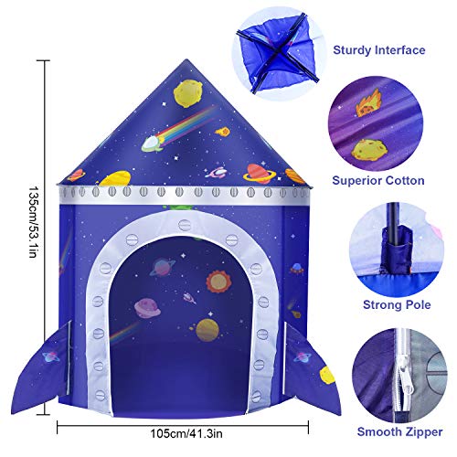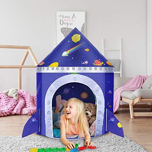 - TIENDA DE NAVIDAD DE ROCKET ÚLTIMA: ¡Esta tienda de campaña infantil única es especial para cualquier niño y niña que lleve el sueño de convertirse en un pequeño astronauta! ¡Perfecto para niños a quienes les gusta el espacio o las cosas de naves espaciales! Usa la casa de juegos como una herramienta de aprendizaje para enseñar sobre planetas, galaxias y otros cuerpos celestes.