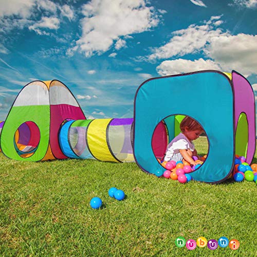 NUBUNI 4 en 1 Tienda Campaña Infantil : 2 Casitas Tela + 2 Tunel de Juego para niños : Plegable Parque Bebe Bolas Infantil Jardín Exterior Interior Juguetes Niño Niñas Bebes Casitas Tela Tipi