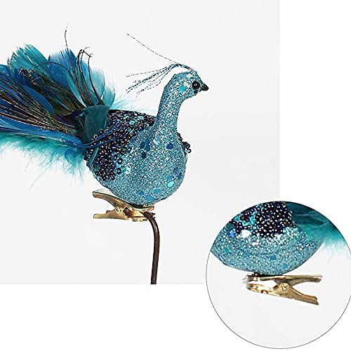 - Fácil de usar: hay un clip de fijación de metal en la parte inferior de cada pavo real, que se puede fijar fácilmente en el árbol de Navidad, guirnalda, centro de mesa o decoración de flores. El pequeño clip de metal en la parte inferior del pavo real artificial hace que sea estable y fácil de fijar en diversas manualidades. Se puede quitar fácilmente y usarlo la próxima vez.