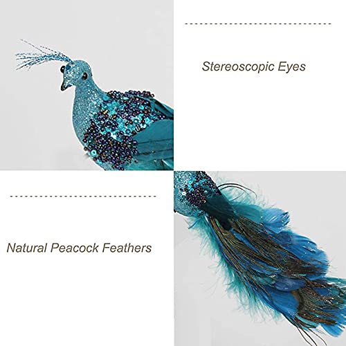 - Diseño realista: el pavo real artificial está decorado con formas realistas. La cola de plumas de pavo real y las lentejuelas a juego añaden brillo e interés. Estos impresionantes pavo real tienen una lujosa cola larga con plumas turquesa y azul multitono.