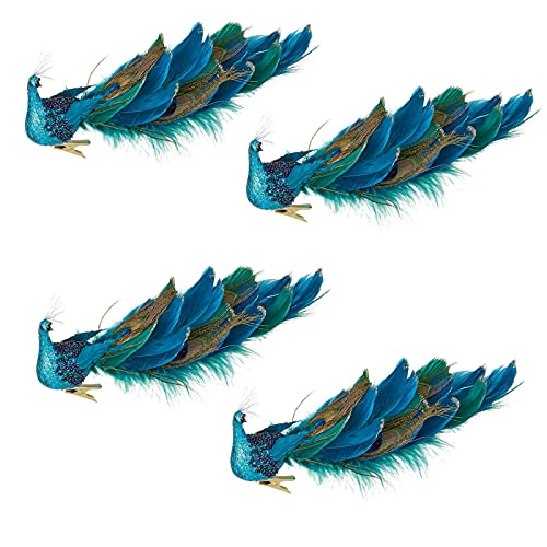 SJDWDX 4 clips de pavo real de árbol de Navidad, 30,5 cm simulación tridimensional azul pavo real plumas naturales con clips de metal para decoración de festivales en el hogar
