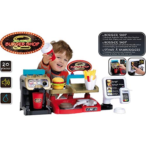 - Si quieres montar tu propia hamburguesería en la habitación de tus hijos, encontrarás accesorios de tienda y todos los accesorios prácticos que necesitas en este establecimiento: desde el colorido mostrador, con una contemporánea pantalla táctil, hasta la parrilla de hamburguesas, la freidora y el dispensador de bebidas