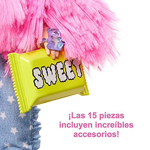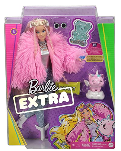 Barbie Extra n.º 3 - Muñeca Articulada con Abrigo Rosa y Mascota Unicornio-Cerdito - Incluye 15 Accesorios - Regalo para Niños de 3+ Años