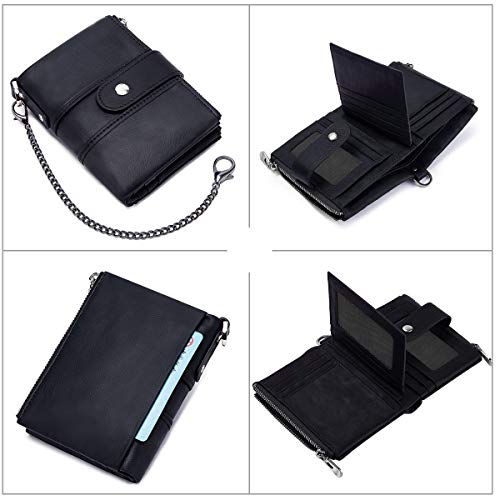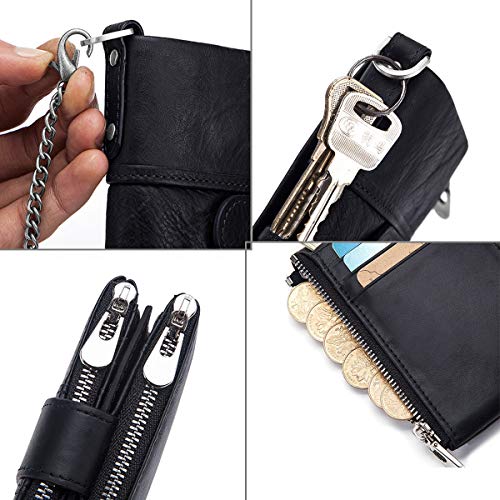 - Perfecto para el Bolsillo: 9cm x 12cm x 3cm. Tamaño ideal para en el bolsillo del pantalón. Biker cartera con cadena (ca. 26 cm) es extremadamente práctica, durable y resistente. Billetera con cremallera hombre con cadena de seguridad desmontable, es bastante robusta, protege tus objetos de valor.