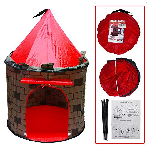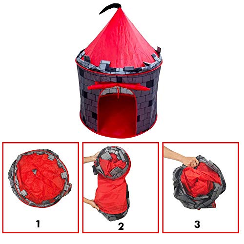 deAO Tienda Pop-Up Con Diseño De Castillo Rojo – Diseño Plegable Autoarmable – Actividad Infantil