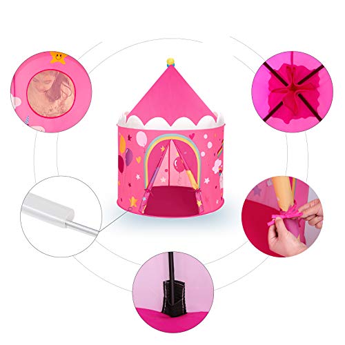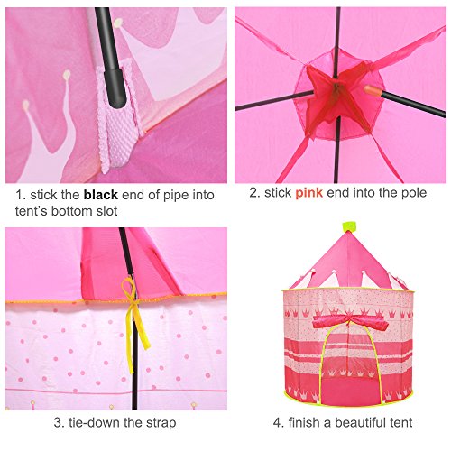- ♥ Fácil de montar - carpa plegable se puede configurar y desmontar en segundos sin necesidad de herramientas. Solo despliégalo e inserte varillas de soporte para una estabilidad adicional, entonces su pequeña princesa obtendrá una hermosa carpa para el castillo. Preste atención a posibles peligros para los niños cuando levante la carpa.
