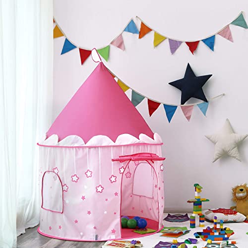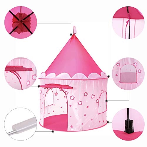 Opret Tienda de Princesa para Niñas Pop Up Carpa Plegable para Niños Carpa Rosa con Bolsa de Transporte y Luz de Cadena para Interiores y Exteriores