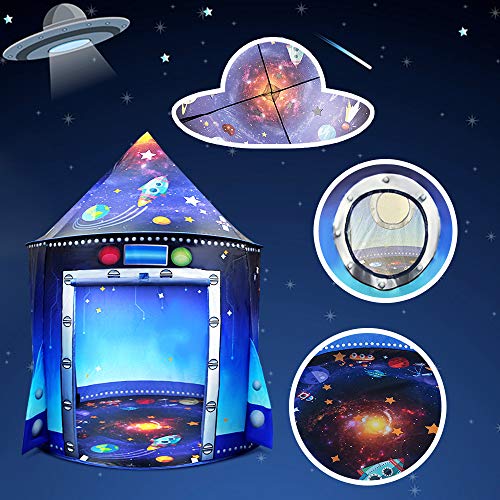 - TIENDA DE NAVIDAD DE ROCKET ÚLTIMA: ¡Esta tienda de campaña infantil única es especial para cualquier niño y niña que lleve el sueño de convertirse en un pequeño astronauta! ¡Perfecto para niños a quienes les gusta el espacio o las cosas de naves espaciales! Usa la casa de juegos como una herramienta de aprendizaje para enseñar sobre planetas, galaxias y otros cuerpos celestes.