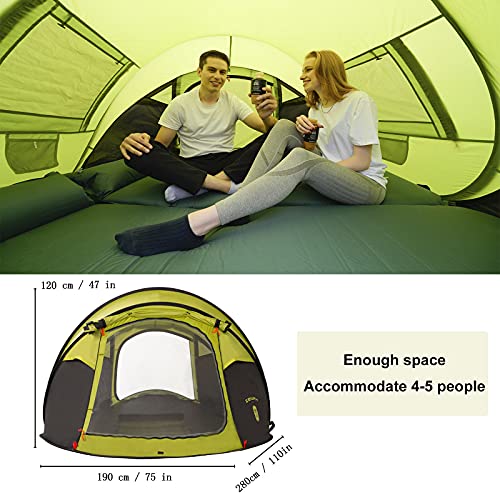 - Más Grande y Espacio: Nuestra tienda tiene un tamaño grande para 4 personas, con gancho de luz para acampar, puede colgar la luz en la oscuridad, hay bolsa de almacenamiento dentro de la carpa, puede almacenar las llaves, teléfono móvil, libros y otros artículos, no necesita preocuparse por sus pertenencias personales