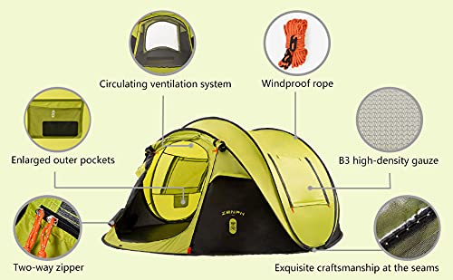 Zenph Tiendas de Campaña Familiares, Tienda de Campaña Instantánea Impermeable a Prueba de Lluvia para 2 Personas, Automático, Emergente Carpa, Refugio del Sol, Verano al Aire Libre